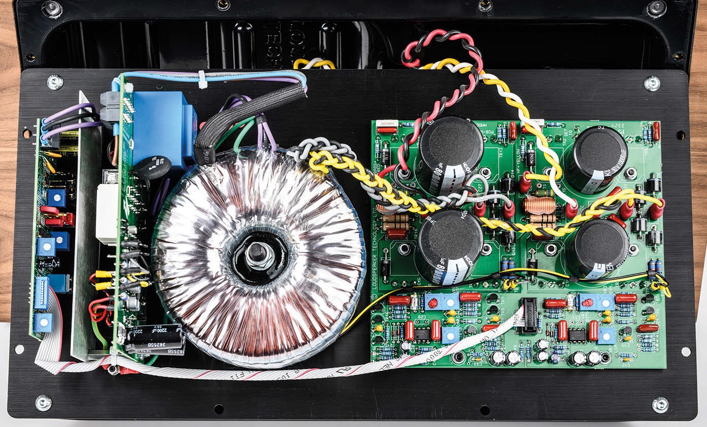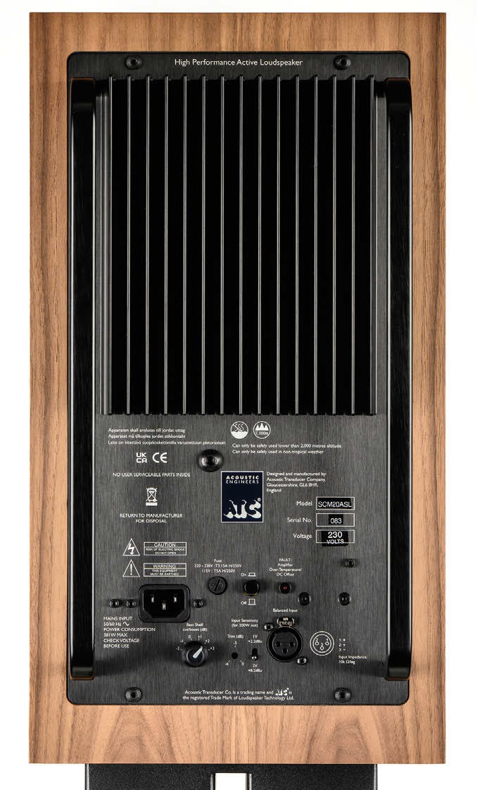 Integrating the two drive units is a precision active crossover which feeds a pair of class A/B MOSFET power amplifiers. The crossover operates at line-level maximising efficiency, plus the inclusion of an all-pass-filter results in improved timing and tonal balance through the crossover region.
