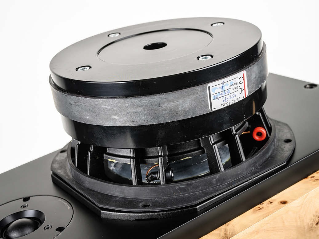 - Below 2.2 kHz, the signal passes to the long-running SB75-150SL mid/bass unit. This has an unusual diaphragm that combines a 75mm dome with a 15cm cone to ensure a wide operating range and uses one of the biggest magnets we’ve ever seen on a driver of this type. This drive unit alone weighs 8.4kg, which is more than many complete speakers do. The large 75mm voice coil and short coil/long magnetic gap configuration all go into making a drive unit capable of accepting high power inputs while generating low levels of distortion.